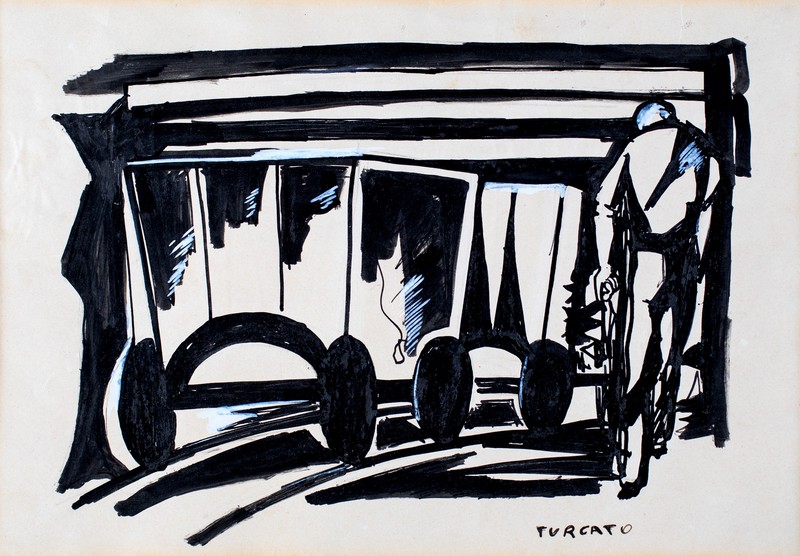Giulio Turcato nasce a Mantova nel 1912. Nel 1920 con la famiglia si trasferisce a Venezia dove avviene la sua formazione presso la Scuola d’Arte ed il Liceo Artistico. Le prime tele sono del 1926 e le prime esposizioni collettive sono del 1933, a Venezia.