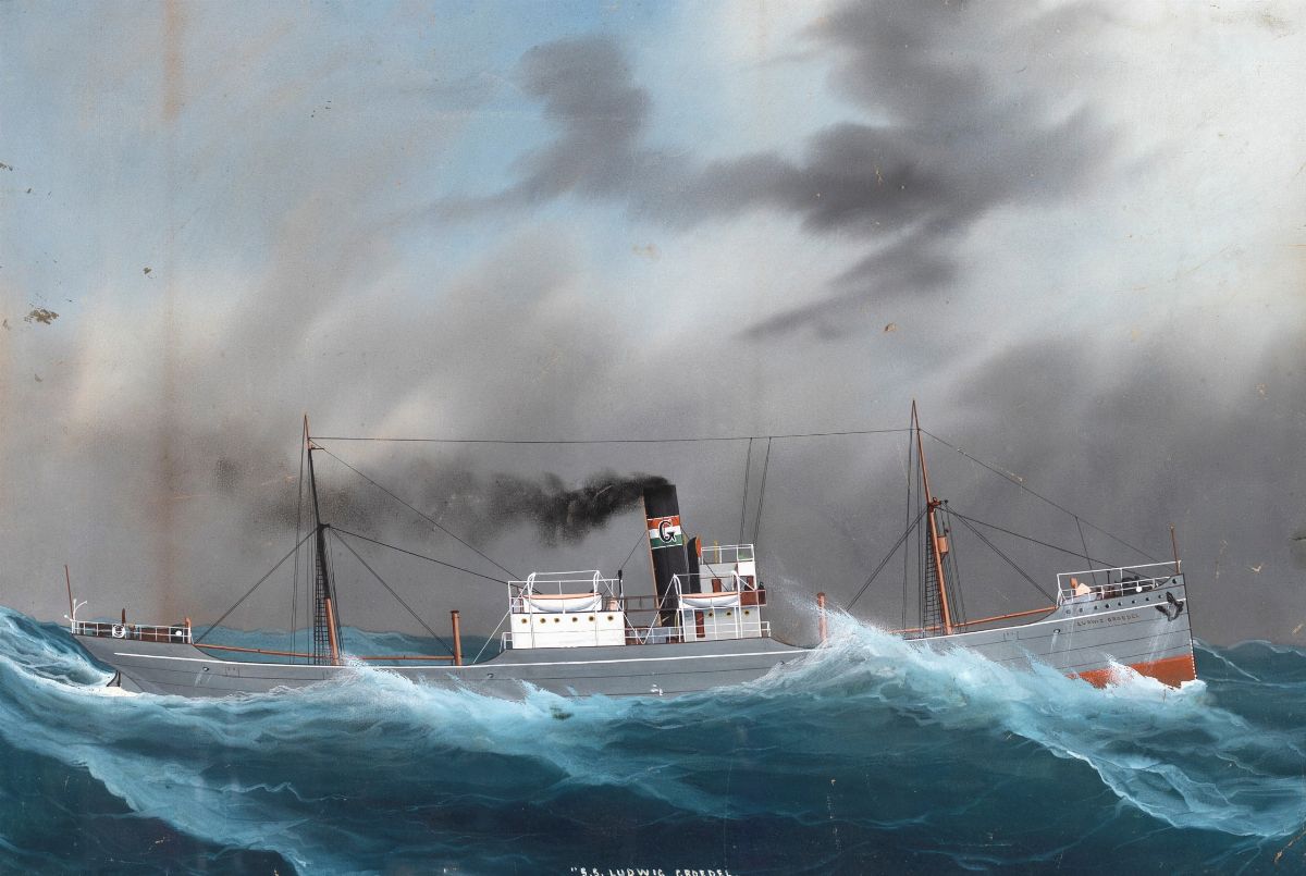 Il piroscafo Ludwig Groedel, varato nel 1904, fu ridenominato Milly nel 1914 e nel corso della Grande Guerra fu armato e impiegato per trasporti. Il 6 settembre 1918 fu silurato a nord della Cornovaglia dal sommergibile tedesco UB87 affondando in cinque minuti con la perdita di due dei trentatrè uomini dell'equipaggio. Il relitto giace a 45 metri di profondità. Entro cornici in radica di tuja, cm 66x86