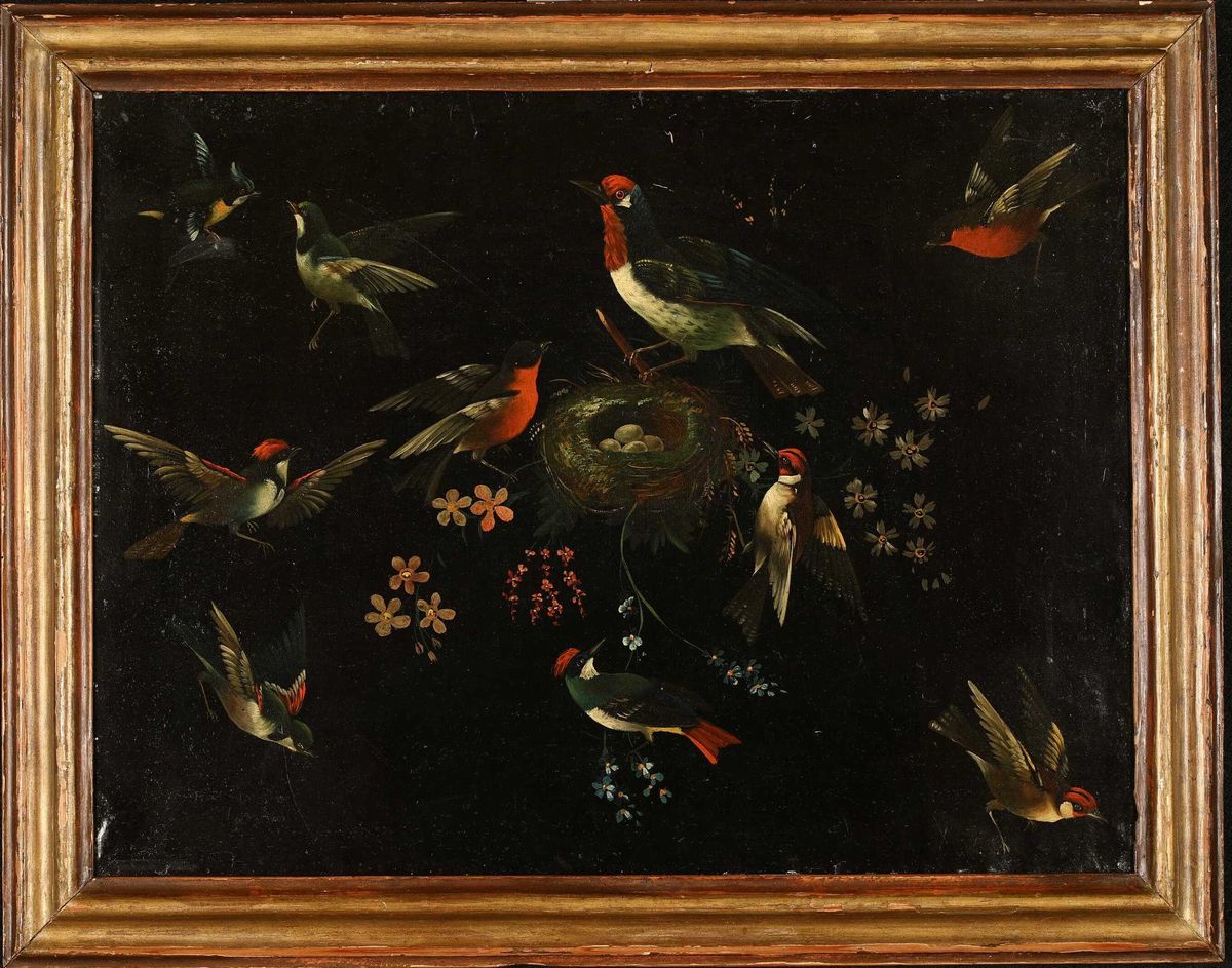 Composizione con nido e volatili