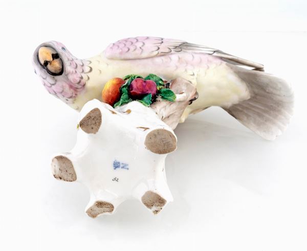 in porcellana policroma raffigurato su un tronco d'albero di ciliegio. Manifattura di Capodimonte.