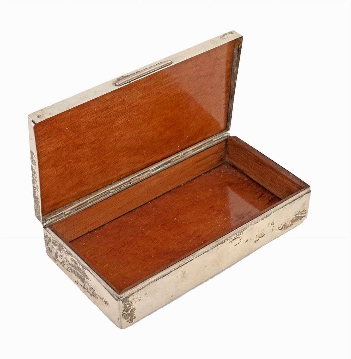 di forma rettangolare con coperchio incernierato decorato a sbalzo con fiori multiformi su fondo inciso,