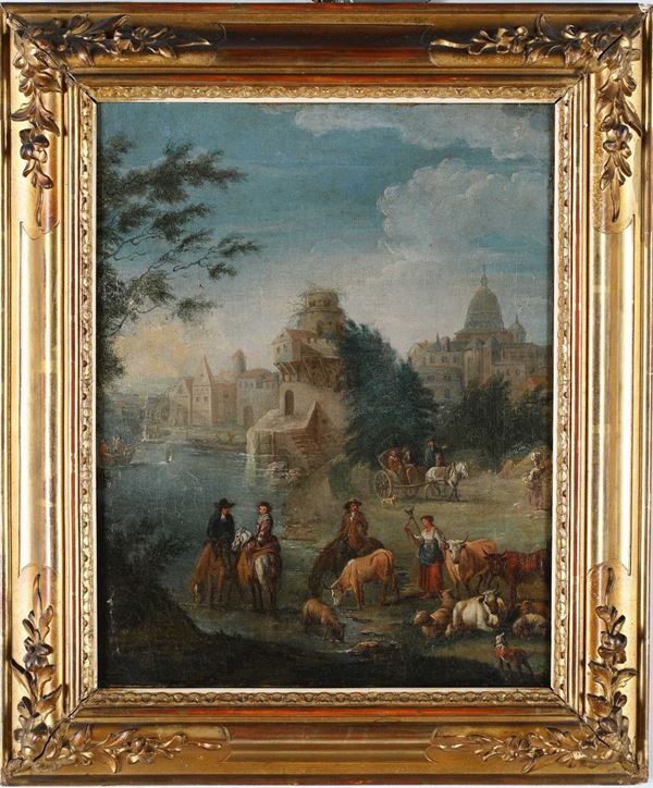 Scena campestre con basilica di San Pietro