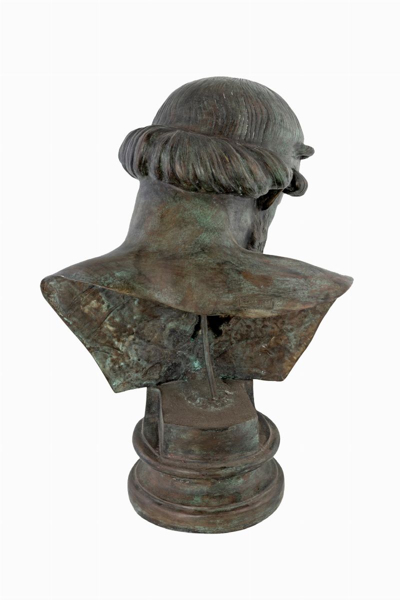 raffigurante Platone, dall'originale custodito nel Museo Archeologico Nazionale di Napoli. Al verso timbro della Fonderia Chiurazzi Napoli. XIX secolo.