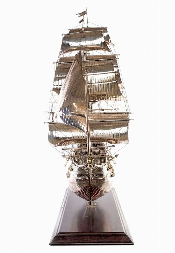 realizzato in lastre, riproducente l'esemplare HMS Victory della Royal Navy del 1765; base in legno.