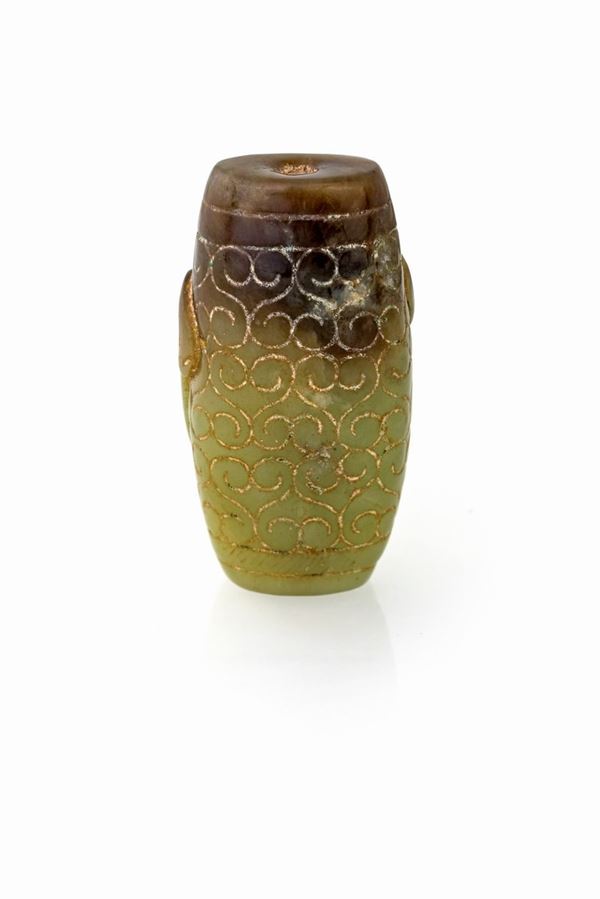 verde e russet con foro passante e figura di drago in bassorilievo, gr. 53