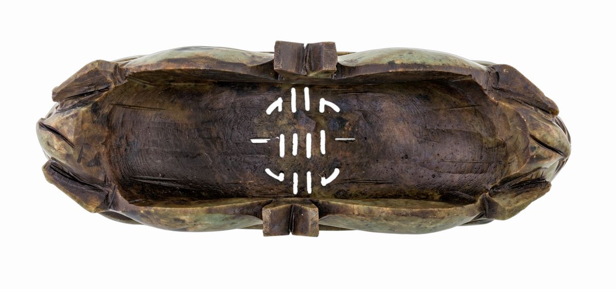 in giada caratterizzato alle due estremità da teste di bambino. Cina, dinastia Qing.
