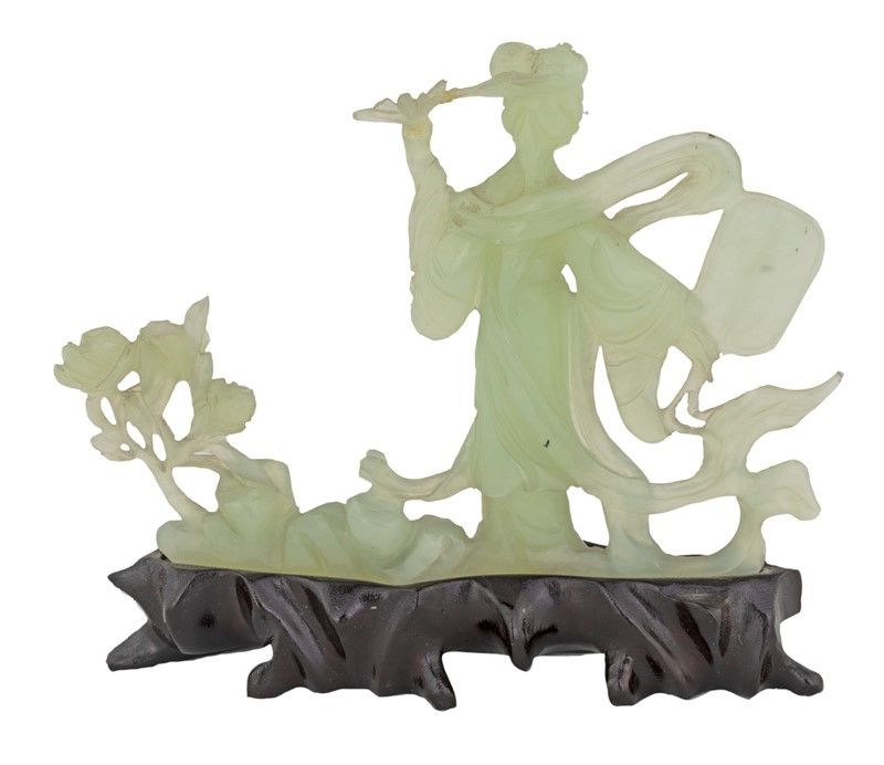 raffigurante una donna con ventaglio, scettro e stola svolazzante; basi in legno a simulare il terreno. Cina, XX secolo.