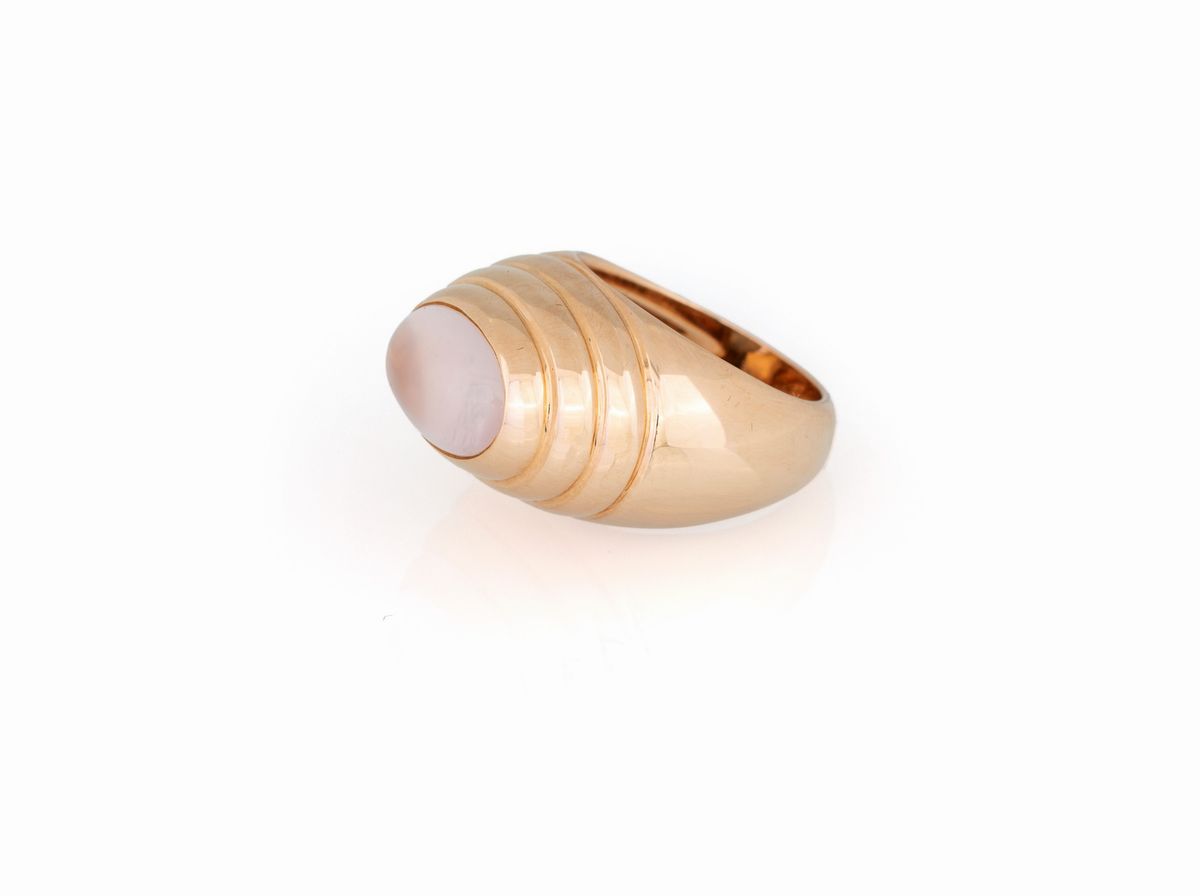 con quarzo rosa cabochon, g 14,10. Internamente timbri Boucheron 50 - E088388. Misura 10