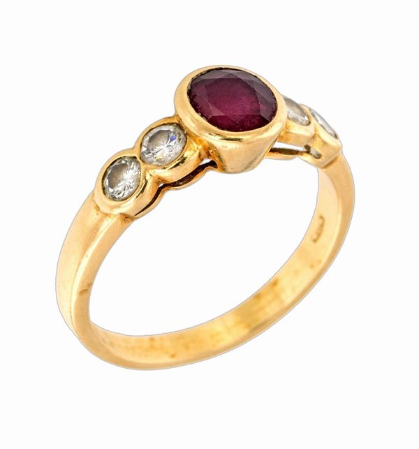ct 1,50 in oro giallo 750/000 con 4 brillanti ct 0,40, g 6,80