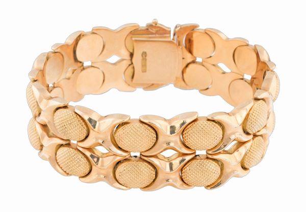 in oro giallo 750/000 a doppio giro di maglie semi rigide con snodi a scomparsa, g 47,00.