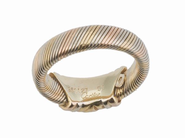 in oro giallo, rosa e bianco 750/000 con pavè di brillanti. Misura 10,5, presenti timbri e numero di serie 951127-51