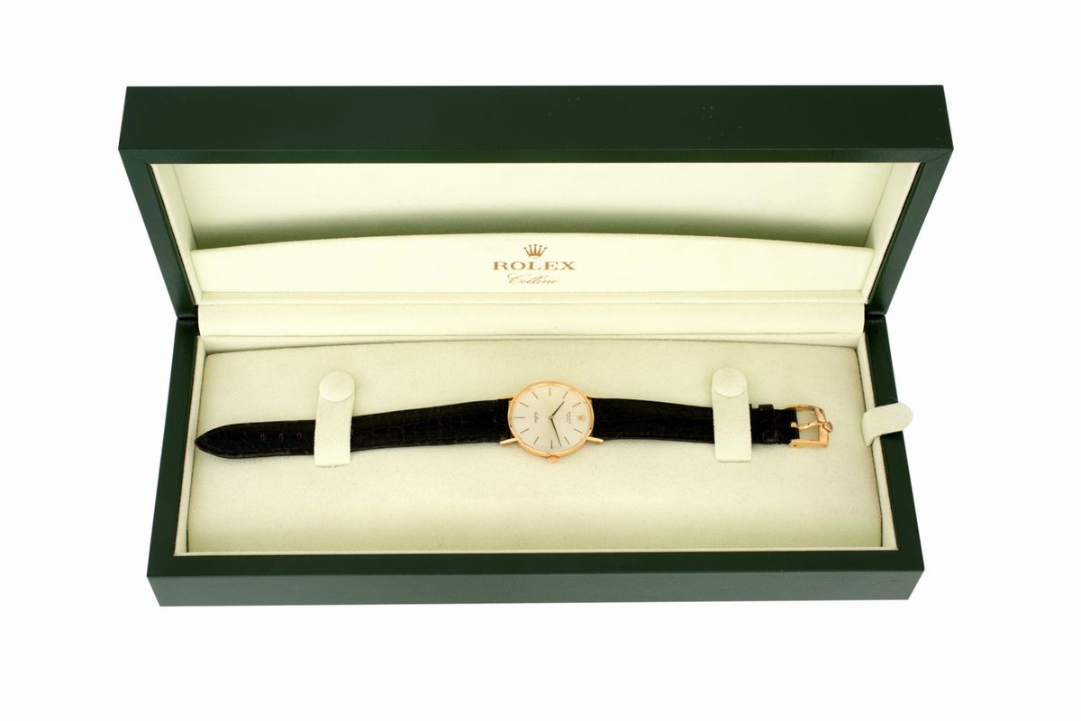 cassa in oro 750/000, quadrante perla, cinturino originale in coccodrillo, fibbia Rolex originale placcata. Perfetto stato di conservazione con corredo di scatola originale Rolex.