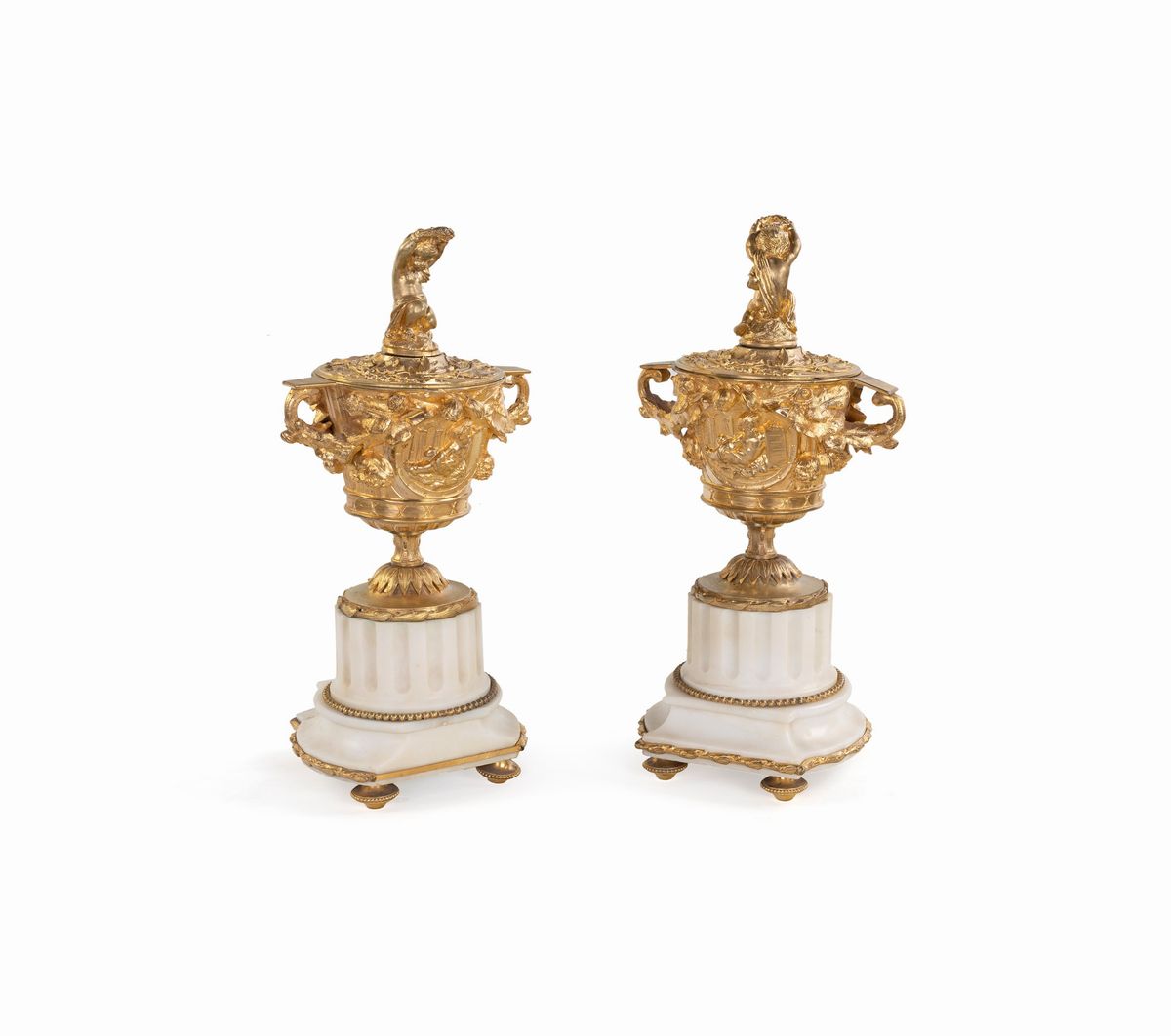 Coppia di vasi in bronzo dorato