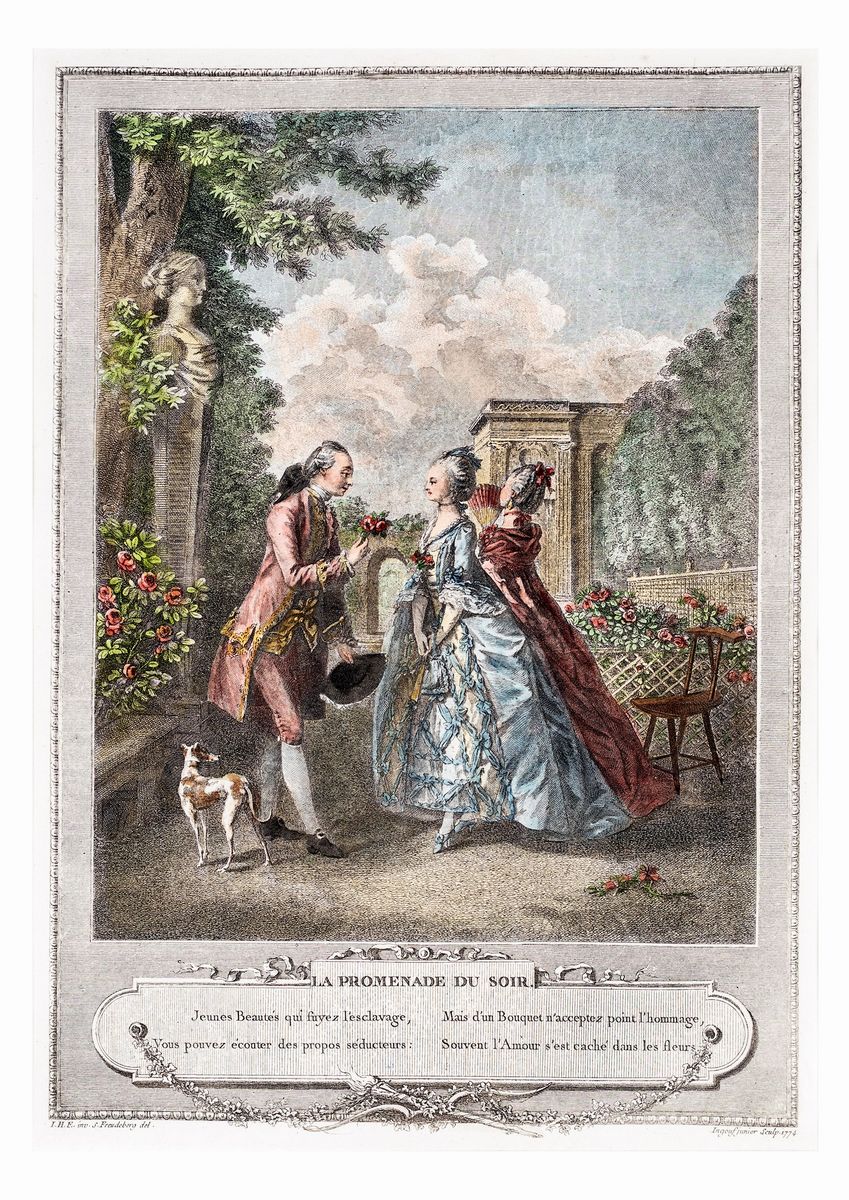 raffiguranti scene galanti in abiti settecenteschi. In cornice.