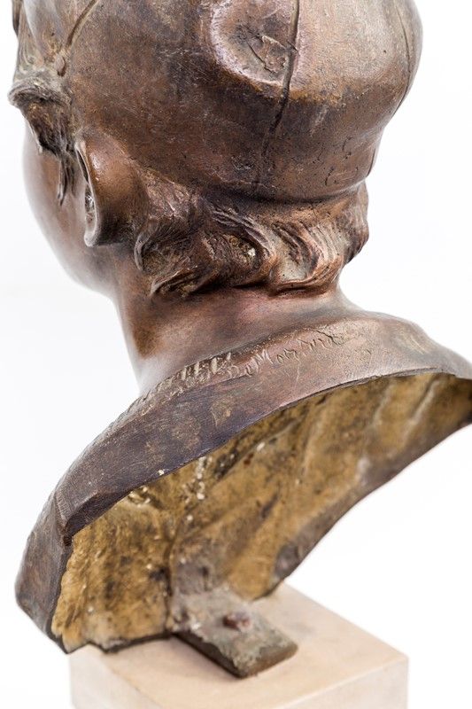bronzo su base in marmo chiaro cm 12x11x11 Firmato sulle spalle De Martino