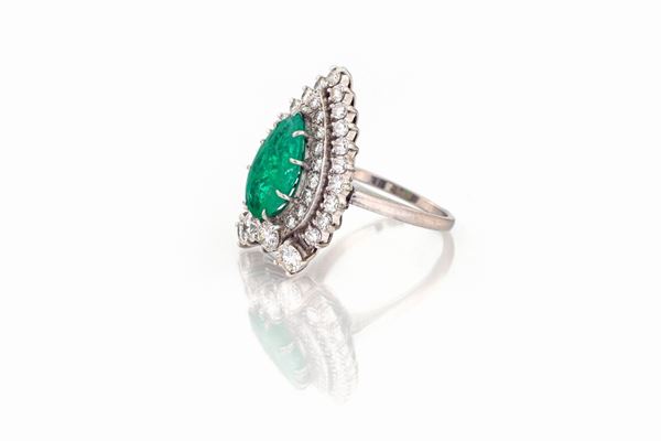 smeraldo taglio marquise ct 3,00, brillanti ct 0,90