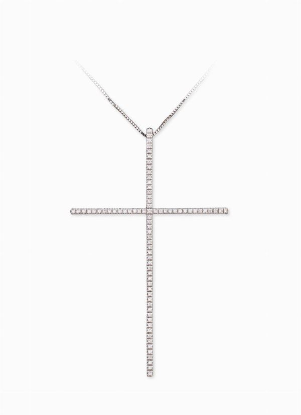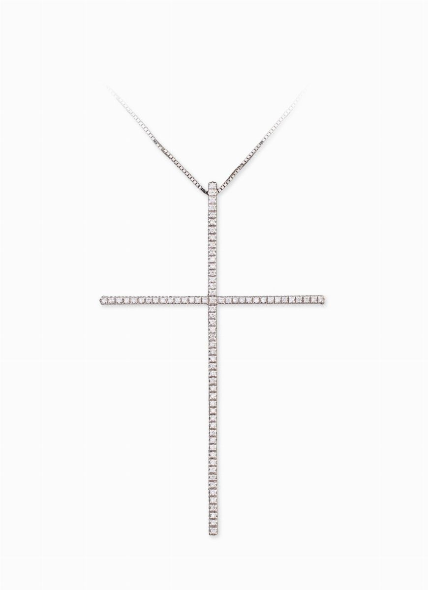 di ct 0,53 in oro bianco 750/000, catenella San Marco, g 7,90, misure mm 7,3 x 5,3