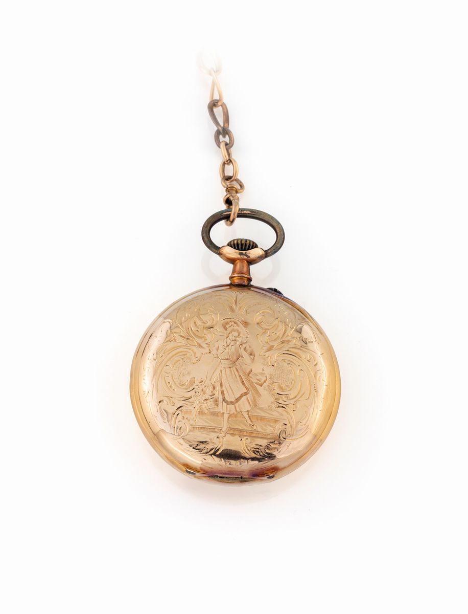 doppia cassa in oro 18 kt con catena e portamine in oro, g 114, da revisionare
