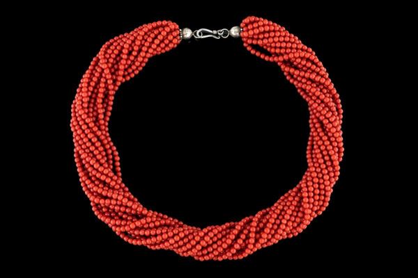 con 15 fili di corallo "Moro di Sardegna" diametro mm 3,4, g 126