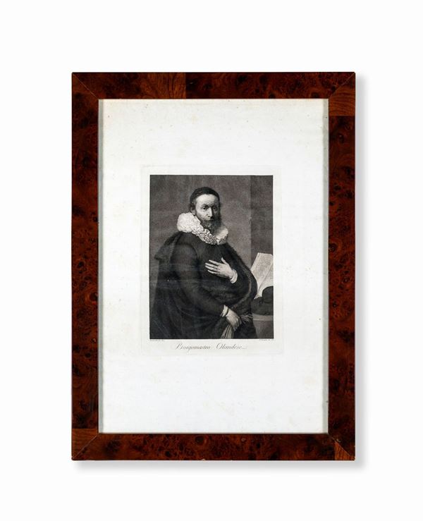 L'incisione riproduce il dipinto originale di Rembrandt, "Ritratto del ministro Johannes Wtenbogaert"