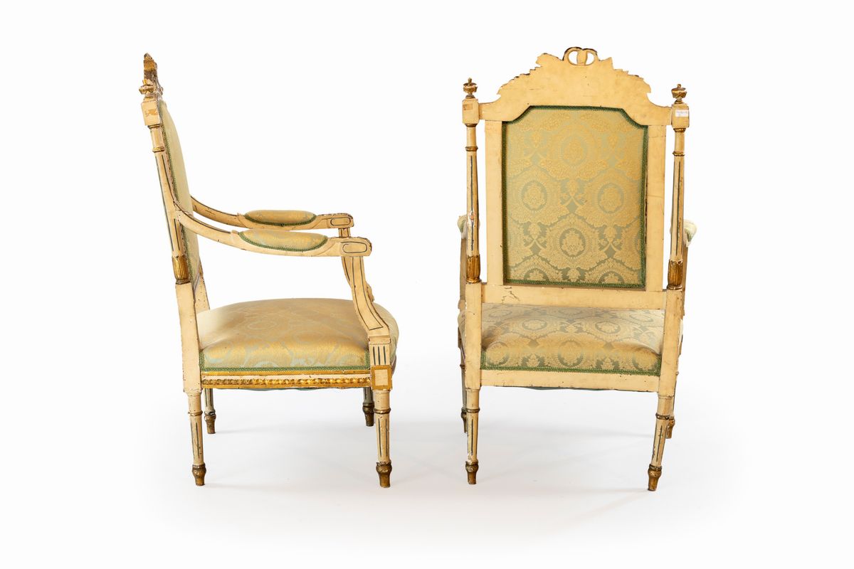 Coppia di poltrone stile Luigi XVI in legno laccato
