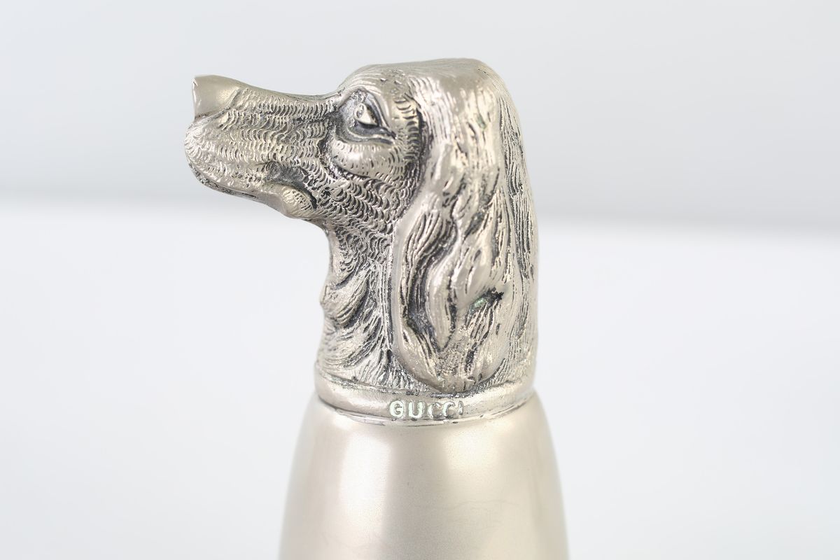 set di 6 bicchieri in peltro corpo tronconico su piede cesellato a forma di cane . Firma incisa