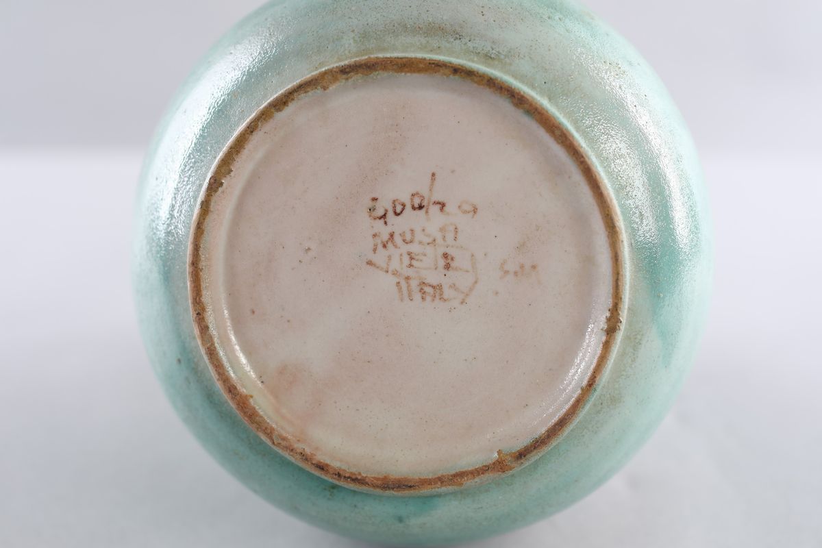 Vaso in ceramica ingobbiata decorazione veliero . Reca sigla sotto la base
