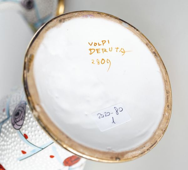 coppia in ceramica disegni tipici dell'epoca firma sotto la base Prod. Deruta