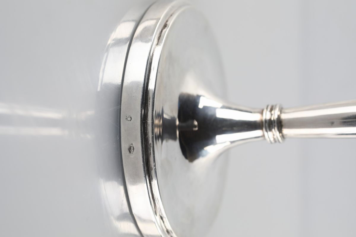 con portacandela in forma di calice su fusto liscio e piede circolare.