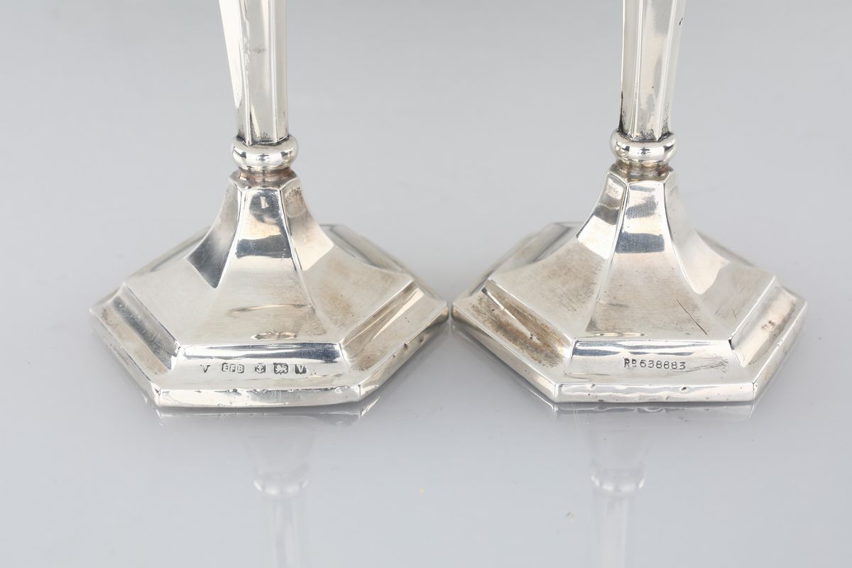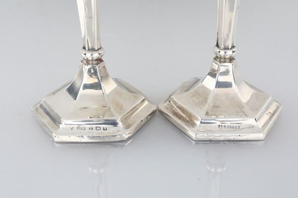 Coppia di piccoli candelieri in argento 925/1000, Birmingham 1920 ca., argentiere E.F.B.