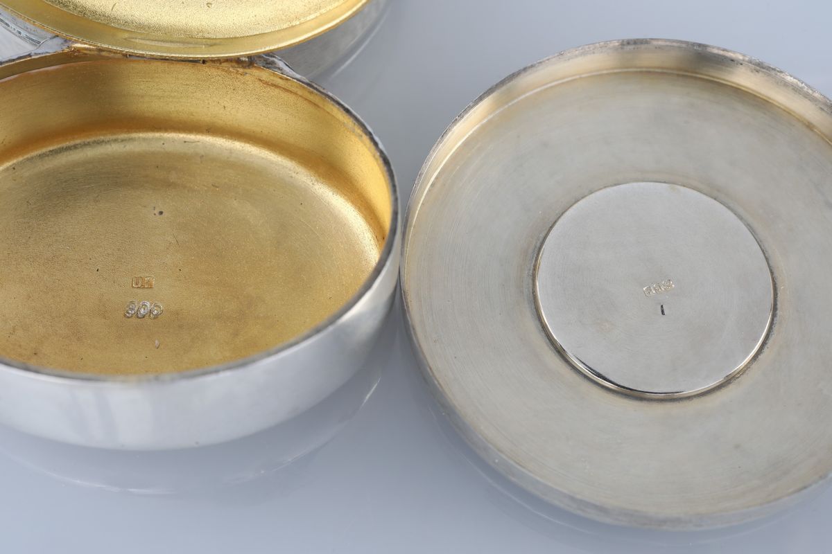 di cui uno di forma circolare e l'altro ovale con coperchio incernierato, entrambe con monogramma VE sormontato da corona, riconducibile a Vittorio Emanuele di Savoia.