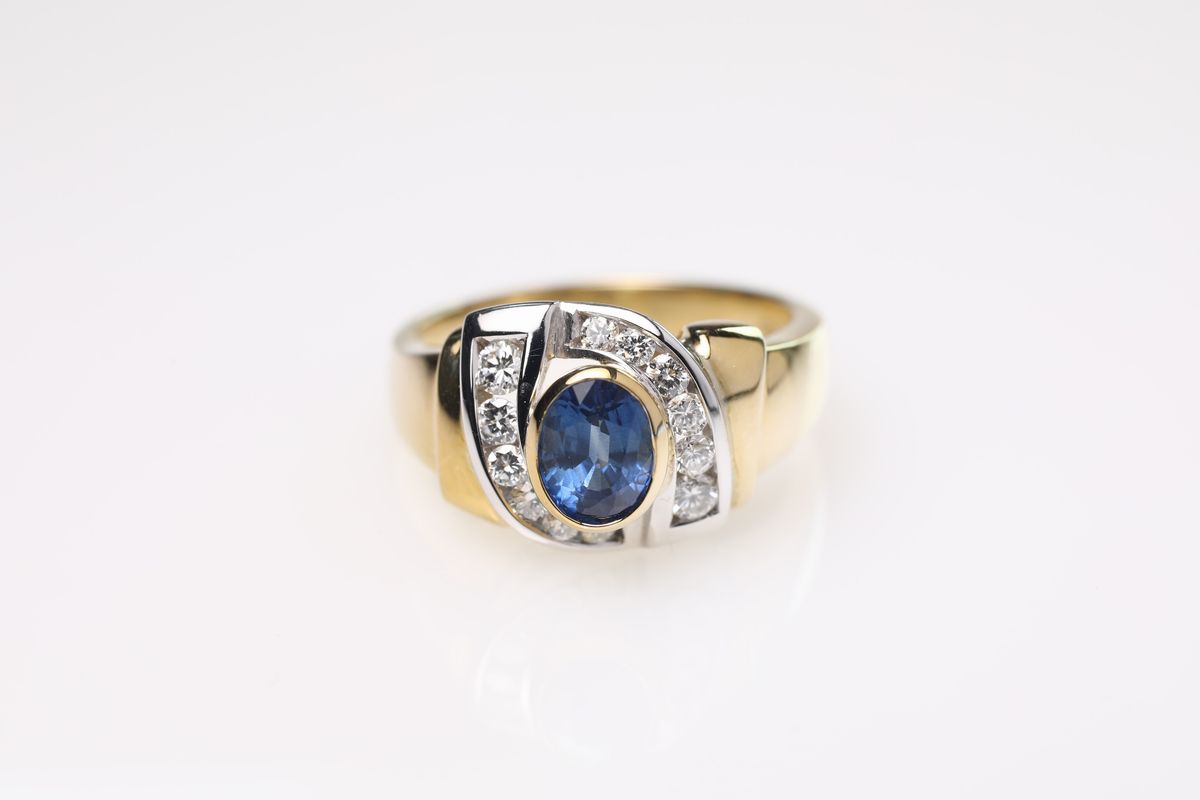di ct 1,10, oro 750/000, brillanti ct 0,33, g 7,30, misura 15