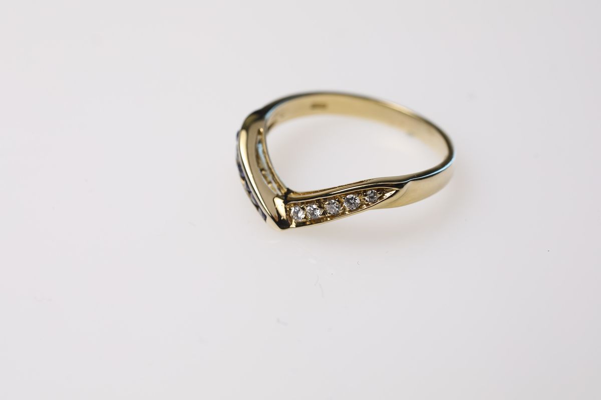 in oro giallo 750/000, zaffiri ct 0,20, brillanti ct 0,06, g 3,3, misura 14