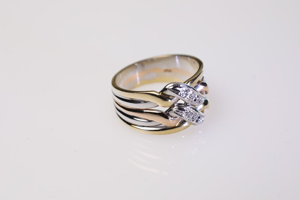 in oro bianco, rosa e giallo 750/000, g 8,90, misura 16