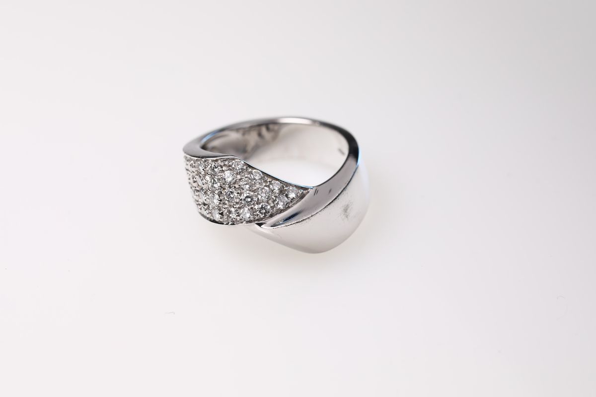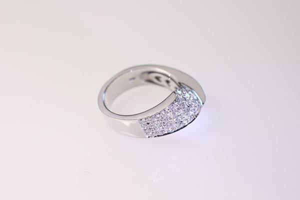 a pave di brillanti ct 0,55 e lastra lucida in oro bianco 750/000, g 9,00, misura 14,5