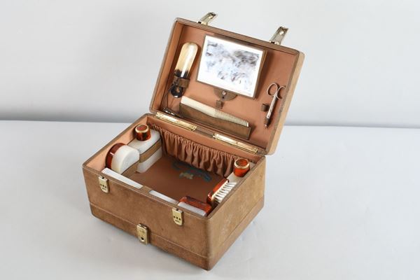 completo di accessori interni, specchio, spazzole, doppio fondo.