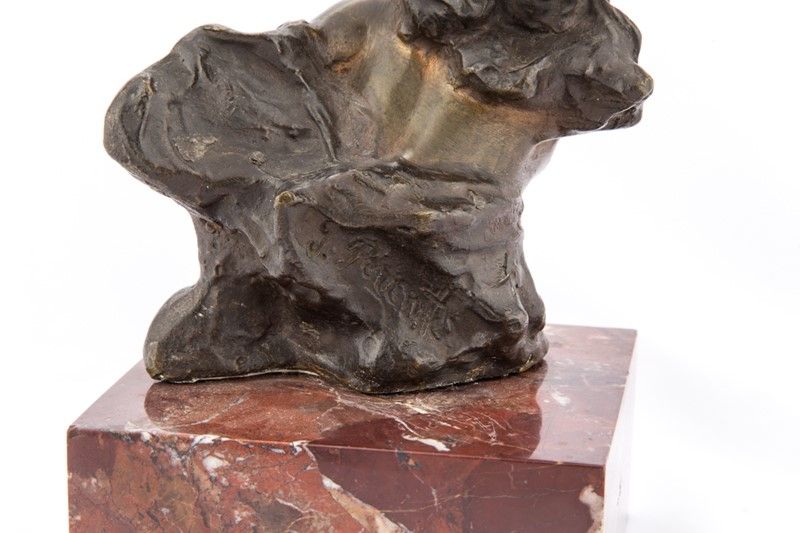 scultura in bronzo su base in marmo rosso; firmata alla base G. Parente