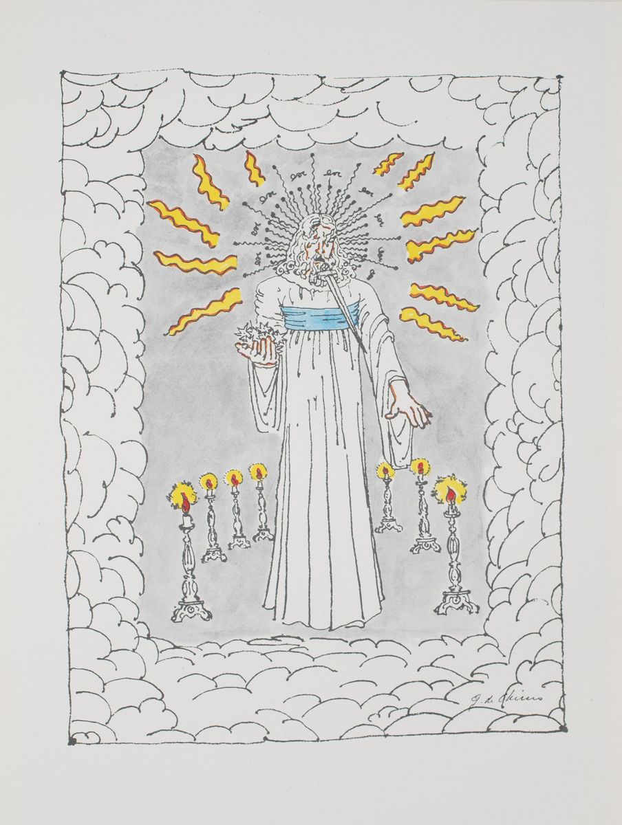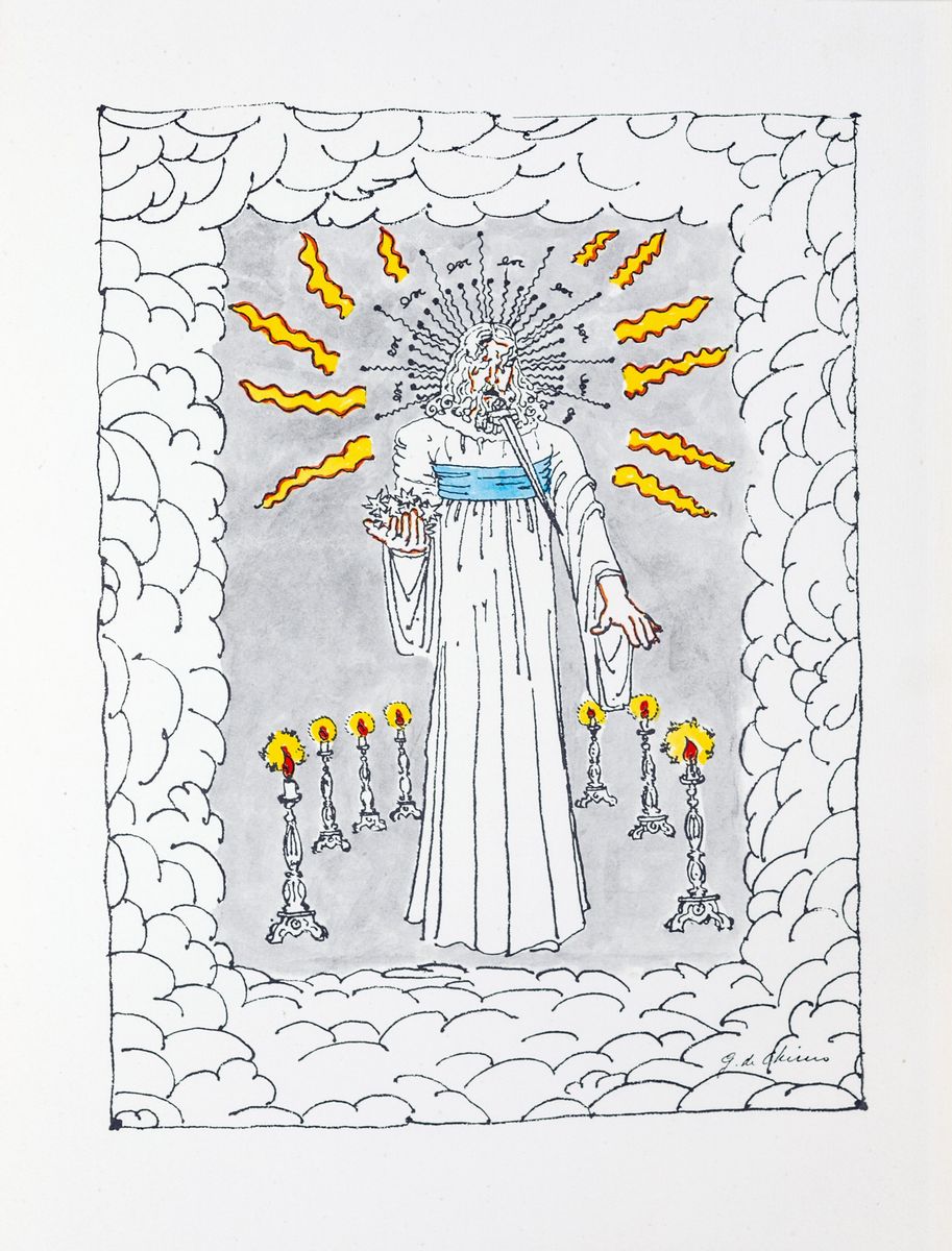 Il volume è stato realizzato nel 1977 da Carlo E. Bestetti Editore d'Arte. La tiratura complessiva è di 1125 esemplari numerati e firmati da Giorgio De Chirico. Il nostro è l'esemplare n. 495/1125. Nel volume sono presenti 22 fotolitografie a colori dei disegni in bianco e nero con i quali De Chirico illustrò l'edizione del 1941 e che per questa edizione ha colorato. Di questi, 2 disegni sono stati appositamente realizzati per questa edizione. Il volume è completo della sua custodia originale in pelle con fregi e decorazioni in oro, argento e bronzo.