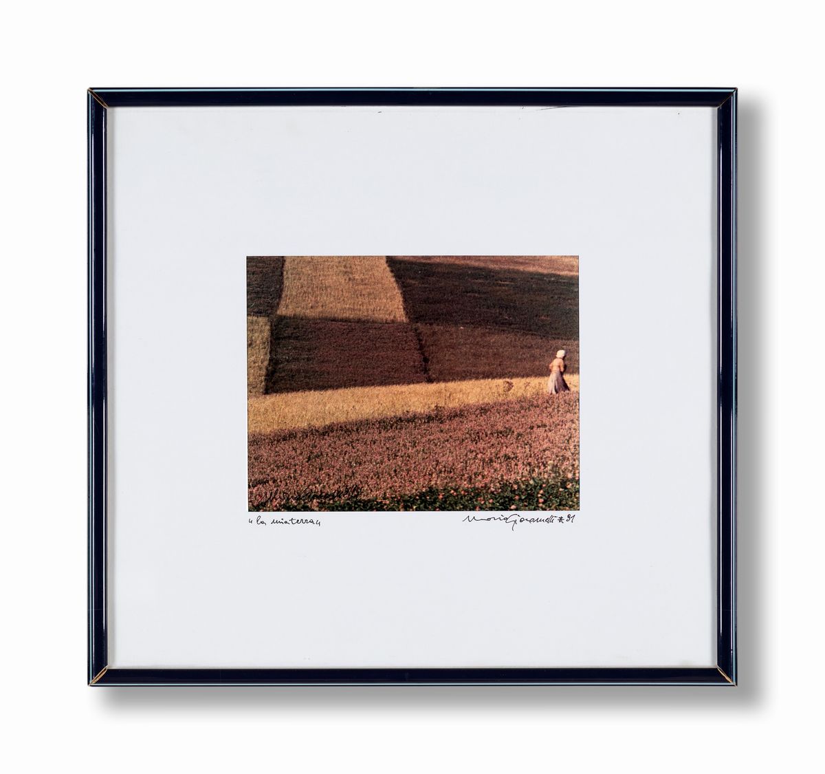 Firma, data e titolo sul fronte del passpartour. Dedica sul retro del passparout. Firmata "Mario Giacomelli" sul fronte in basso e sul retro".