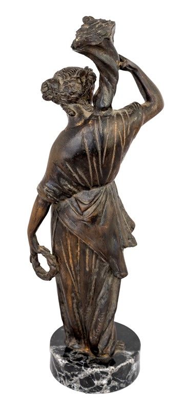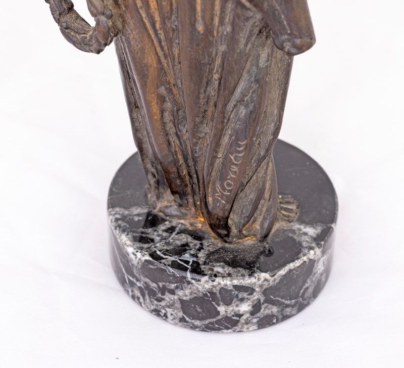 in bronzo brunito raffigurante una vestale su basso supporto in marmo. Reca firma Moreau. Francia XIX secolo.