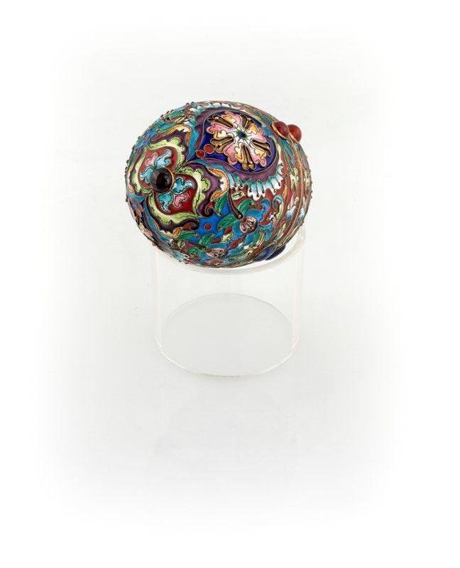Uovo in argento dorato e smalti policromi cloisonné