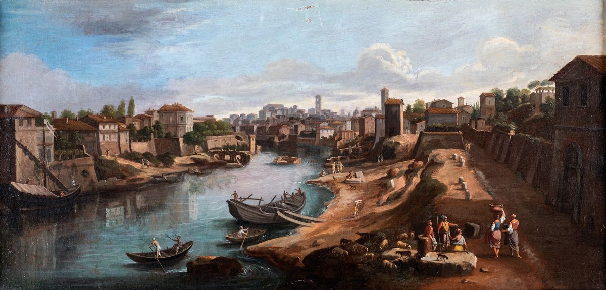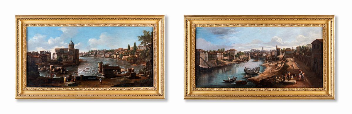 I connotati formali delle vedute riconducono ad altre già note le quali riproducono gli stessi scorci in dimensioni differenti e in una cronologia leggermente anteriore. Si veda (sul retro) la scritta - "Veduta della Mola di S.to. Spirito di Roma verso San Giovanni di fiorentini / in faccia a strada Giulia / Gasparo van Wittel 1713" ( Kassel, Staatliche Kunstsammlungen) ; idem (Roma, Museo di Palazzo Venezia); "Il Tevere al porto di Ripa Grande " (cm 74 X 127) già Roma Galleria Gasparrini - v. bibliografia.