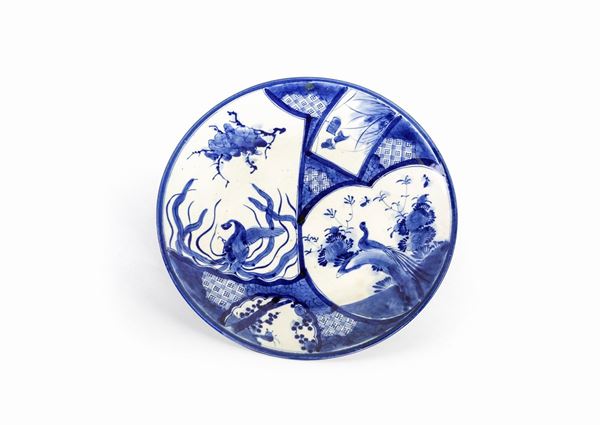 Coppia di piatti in porcellana bianca e blu, Cina