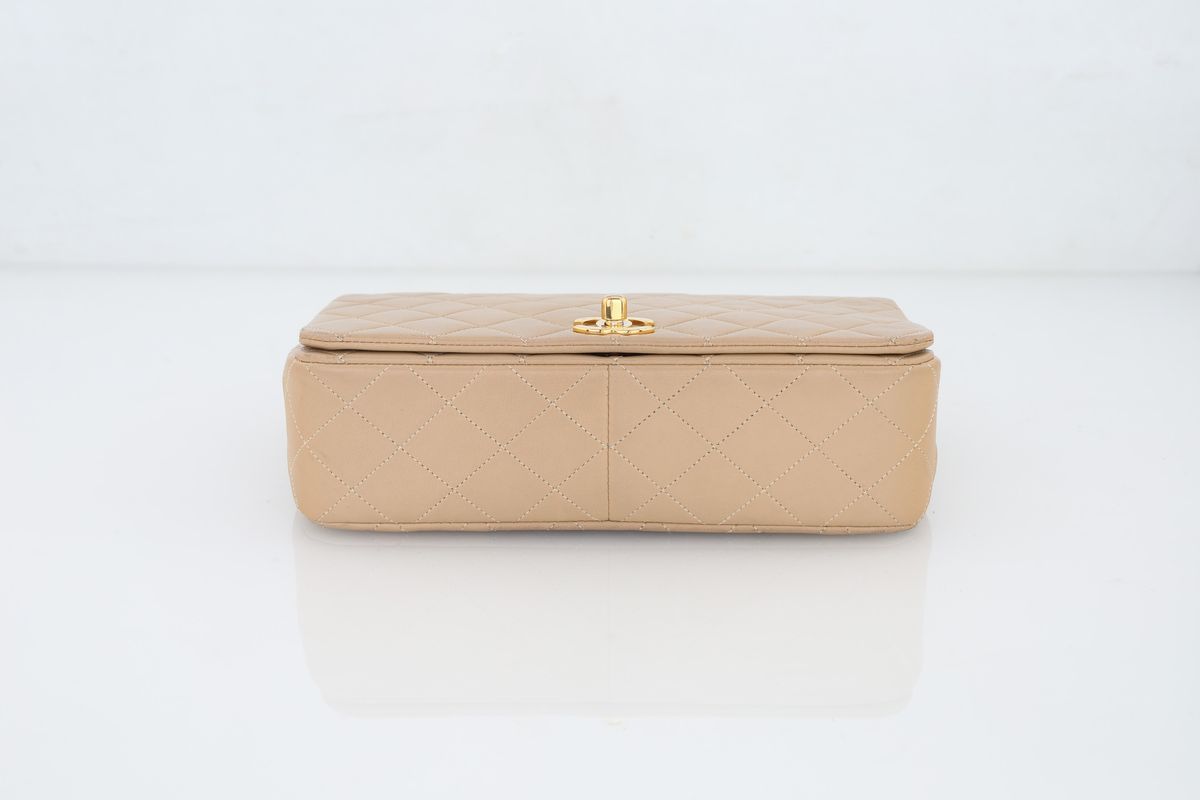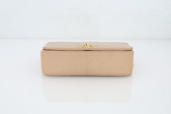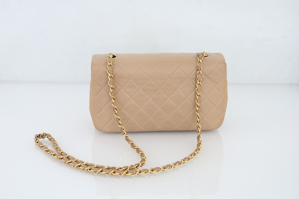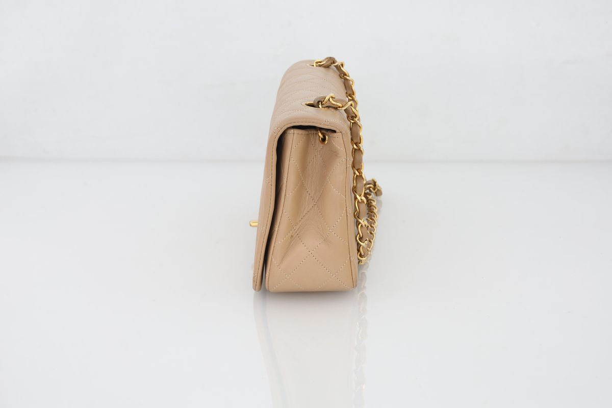 Chanel - borsa a tracolla in pelle beige, 1989-1991
