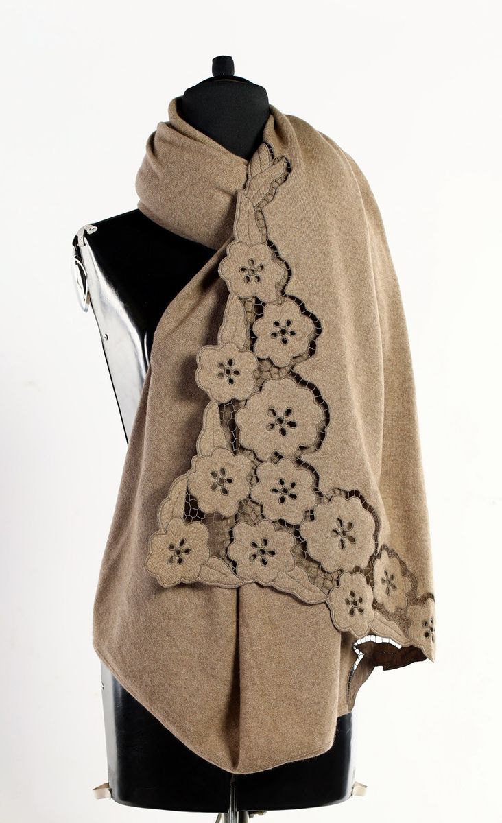 con dettagli traforati a fiore, 100% cachemire. Ottimo stato di conservazione.