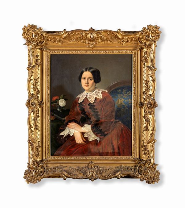 Siglato e datato al verso: DC Napoli 1854 Entro bella cornice in legno e pastiglia