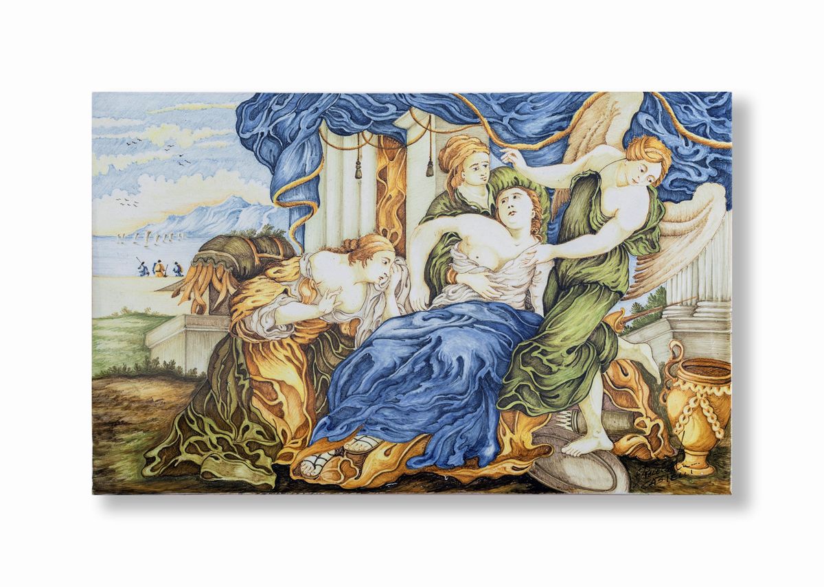 Placca in maiolica, Castelli, XX secolo