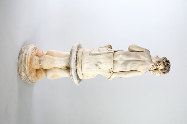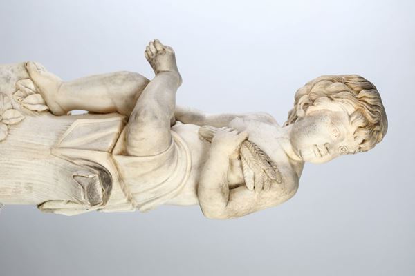 raffigurante allegoria dell'estate, interpretata da un putto con spiga di grano in mano; piedistallo circolare sostenuto da tre balaustri riuniti fra loro.