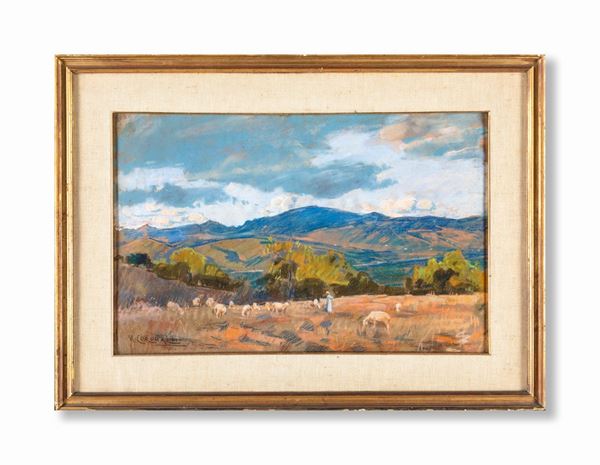 Paesaggio con pastorella e gregge