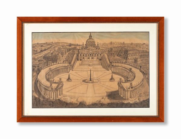 Firma e titolo in basso a sinistra: Vue de la Place du Vatican à Rome par Charles Percier